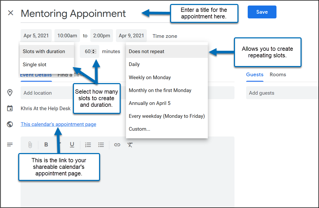 Google Calendar - Using Appointment Slots