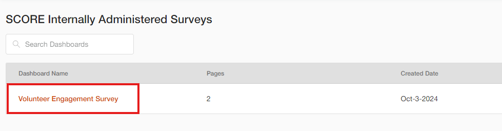 SCORE Internally Administered Surveys: This section contains Volunteer Survey information.